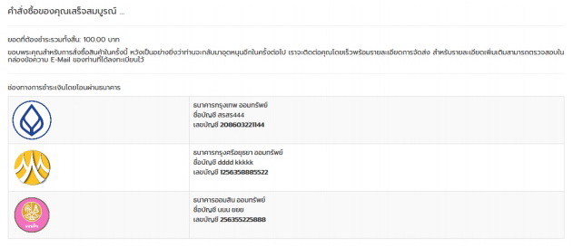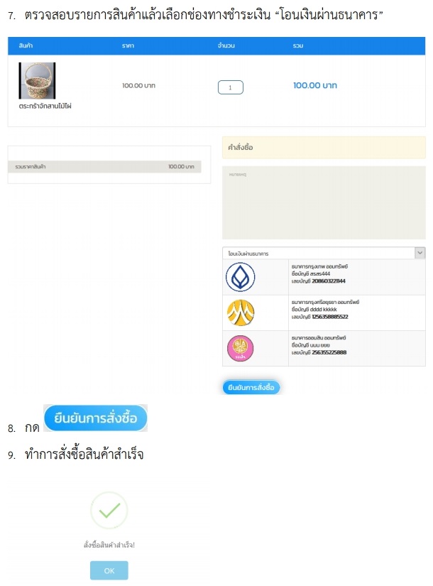 วิธีการสั่งซื้อสินค้า (โอนเงินผ่านธนาคาร)